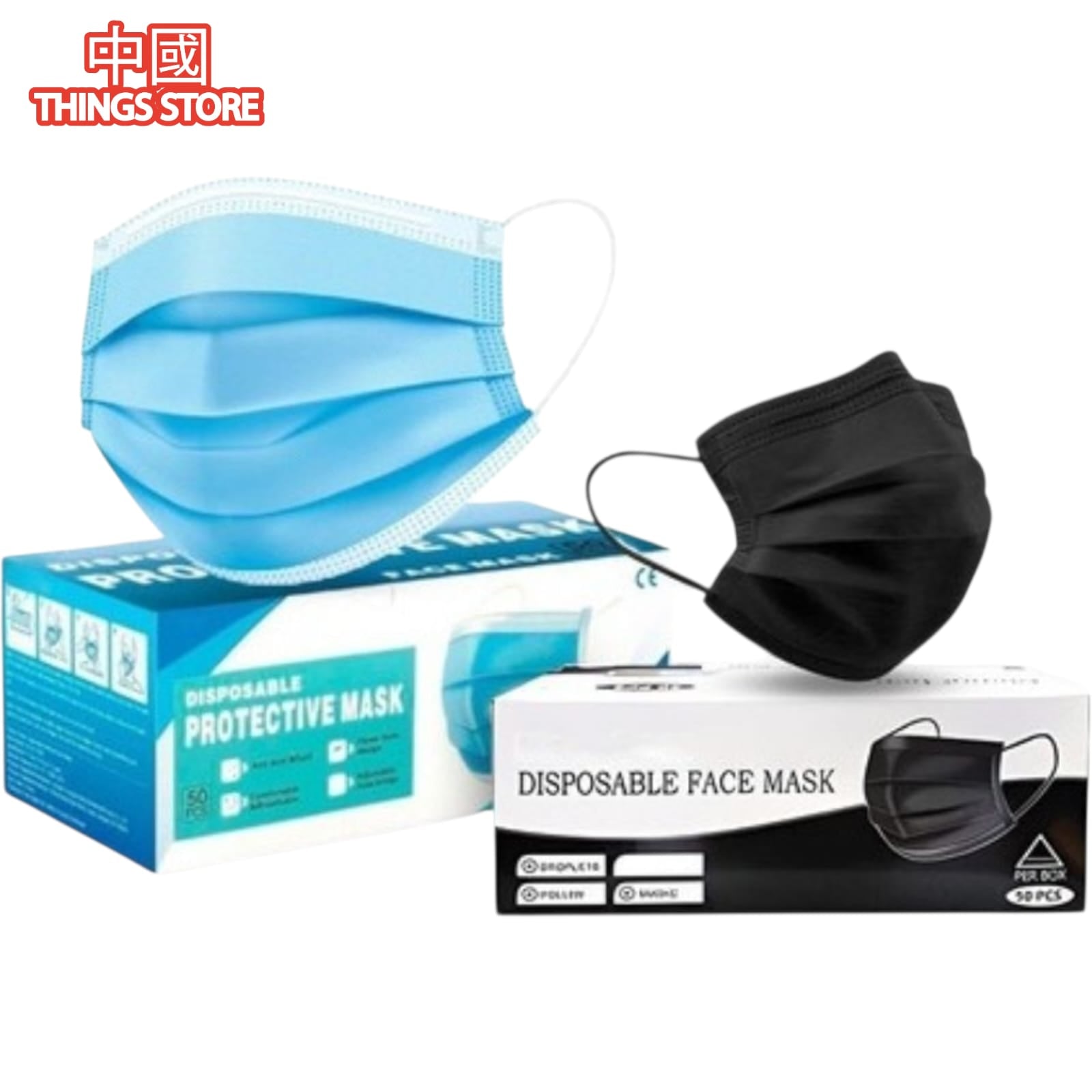 Caja de 50 pz de cubrebocas negro o azul tricapa para adulto.