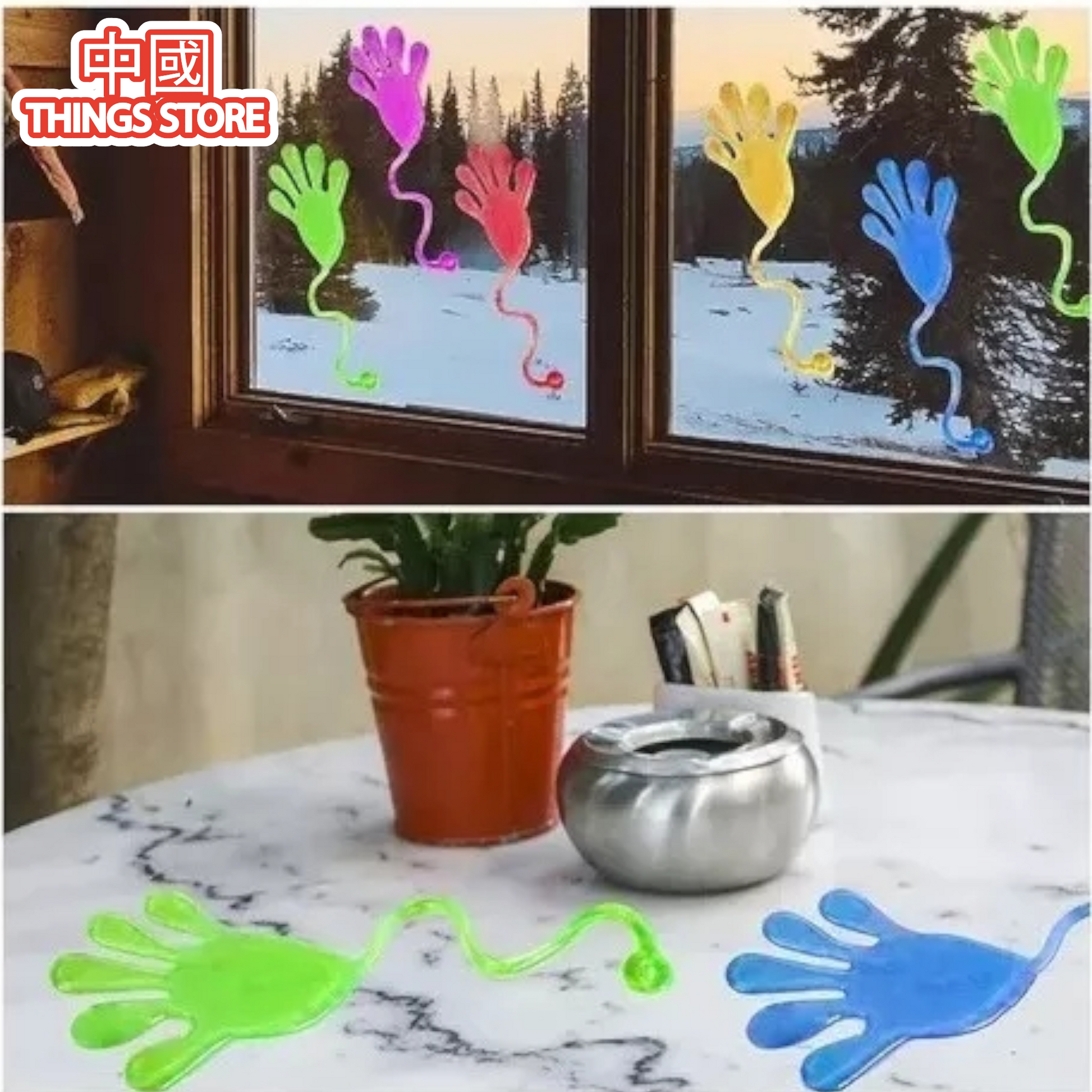 Este juguete en forma de mano se pega y despega en cualquier superficie.