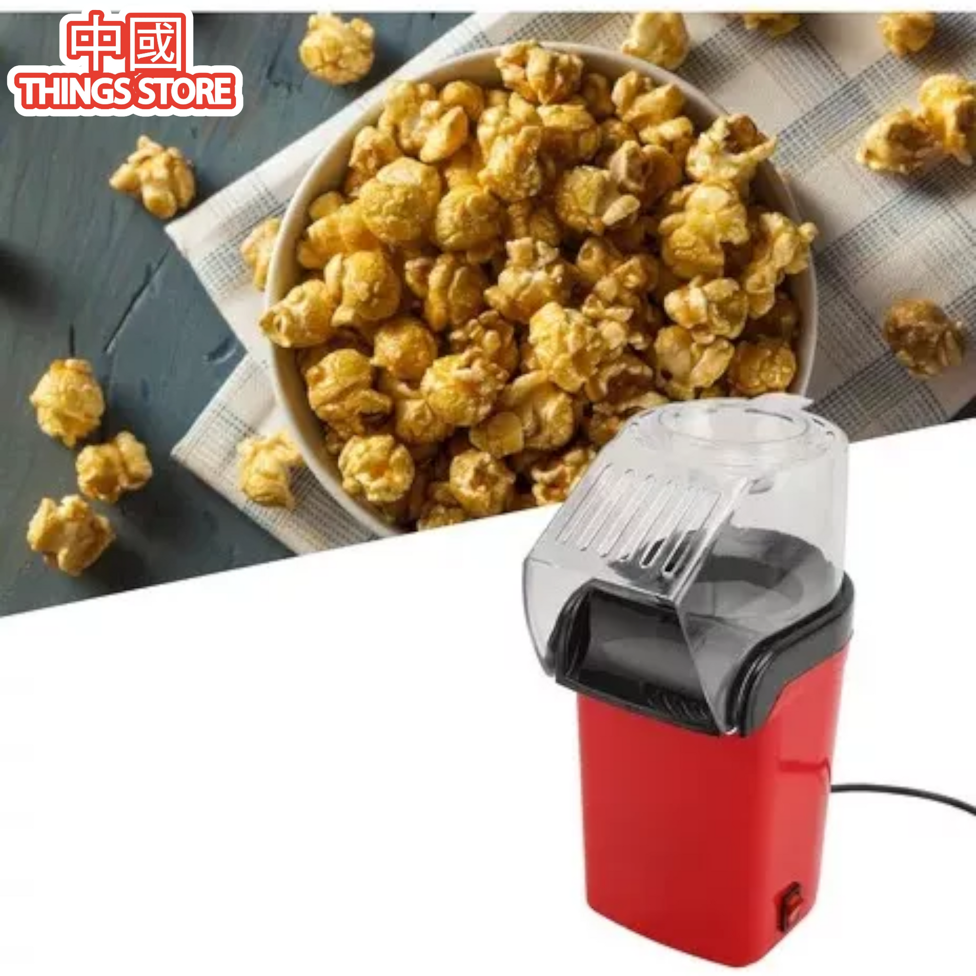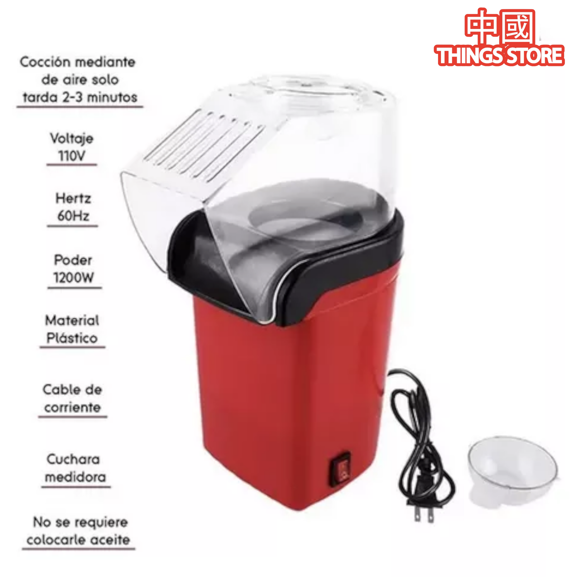 Funciona a base de aire caliente para preparar palomitas sin utilizar aceite. ¡Come saludable y disfruta de una noche de películas!